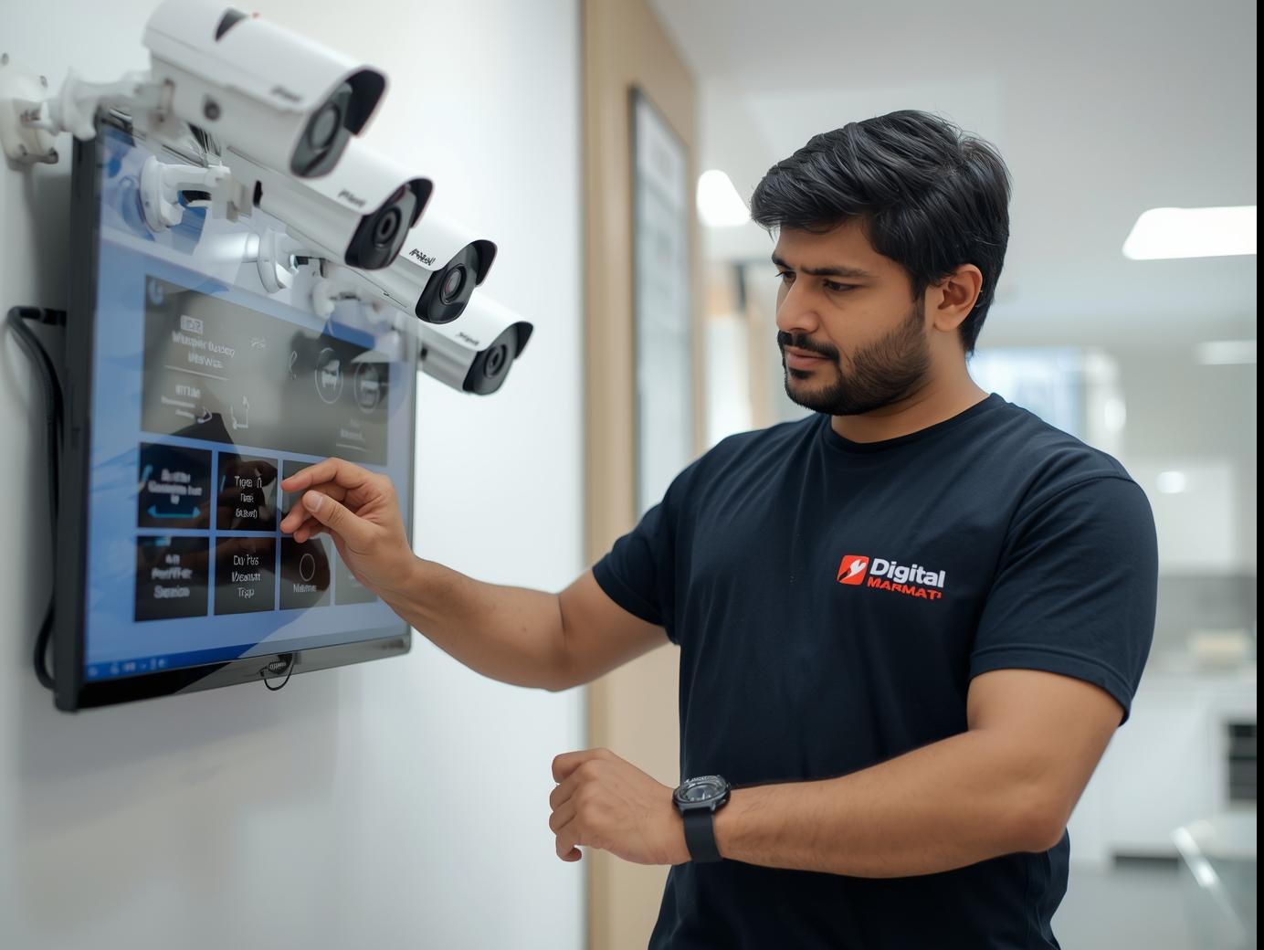 Q1. What is the labour charge for CCTV services at Digital Marmat?